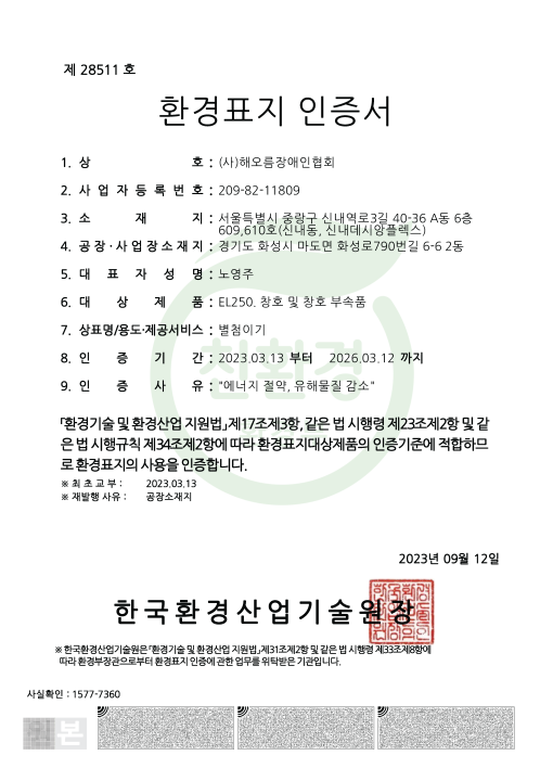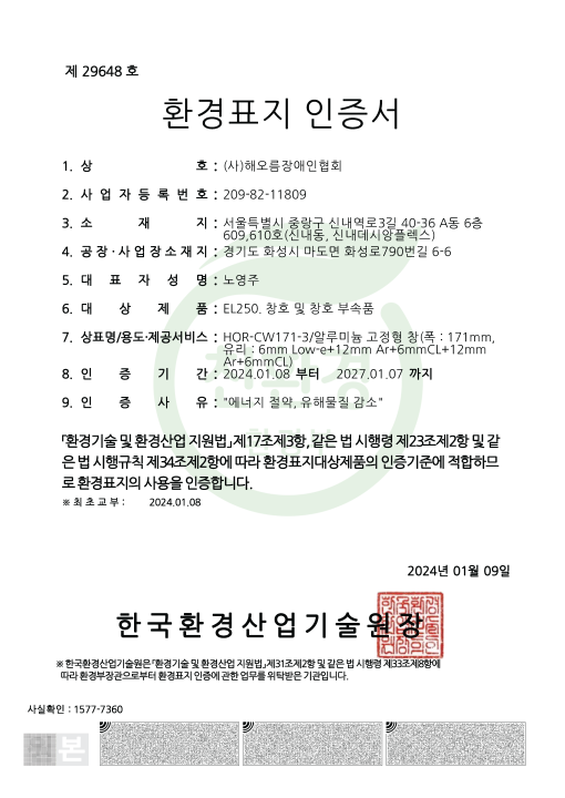 환경표지 인증서(창호)