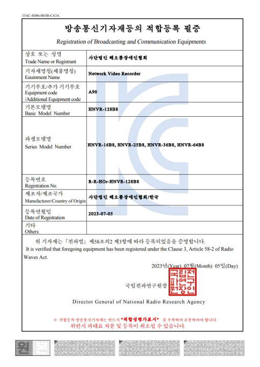 KC인증(HNVR-128B8)