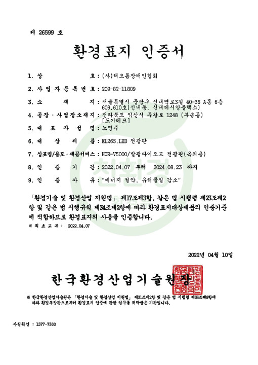 환경표지 인증서(전광판)