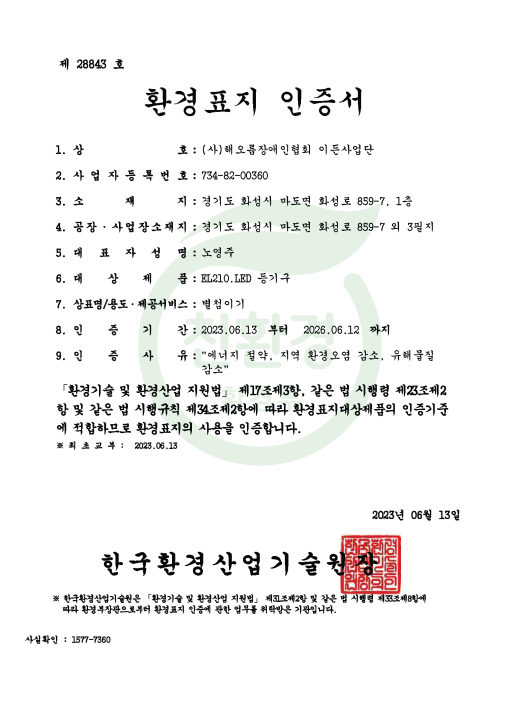 환경표지 인증서(LED 등기구)